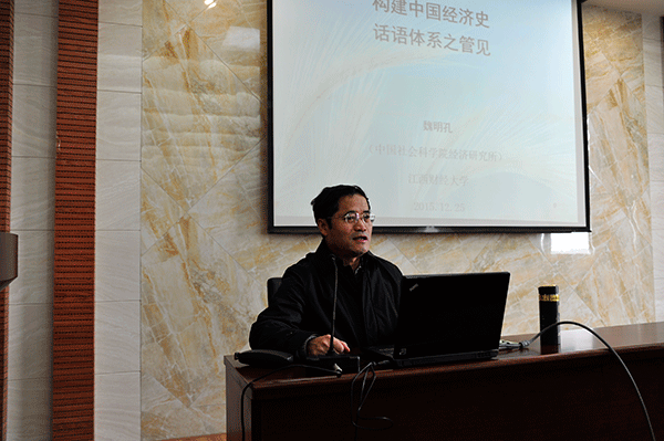 12月25日下午14:30,《中国经济史研究》魏明孔主编应邀为经济学院研究生开展了一场题为“构建经济史话语体系之管见”的精彩讲座。讲座由陆长平院长主持,经济学院陈富良教授、龚立新教授以及部分经济学院的老师也聆听了讲座。