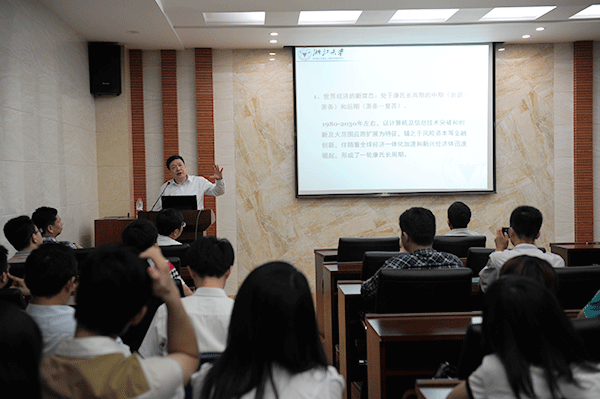5月30日晚,浙江大学经济学院史晋川教授应邀为经济学院学生作了一场题为“新常态下的中国宏观经济”的专题报告。讲座由桂林副院长主持。院长陆长平、副院长杨飞虎以及部分经济学院的老师也聆听了讲座。