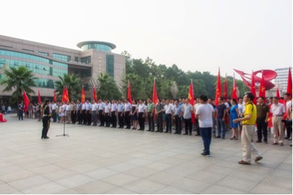 为隆重纪念中国人民抗日战争胜利70周年,弘扬伟大抗战精神,进一步激发广大师生爱国热情,江西财经大学于9月2日早上七点在蛟桥园北区崛起广场举行盛大的升旗仪式,相关校领导、党办校办、各学院负责人以及蛟桥园13、14级全体学生和麦庐园部分学生代表共同参加了本次升旗仪式。