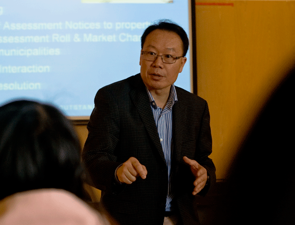 4月26上午10:00北区综合楼第二会议室举办了主题为“北美房地产评估系统研究”的讲座,主讲人:王平(steven).参加本次讲座的有:经济学院副院长李国民副教授,资产评估专业导师余炳文老师还有经济学院12级资产评估专业全体研究生及各位对房地产感兴趣的学生。王平先生从事房地产20余年,对加拿大安大略市政评估业务驾轻就熟,王平先生丰富的评估经验配合轻松的肢体语言为我们展示了北美资产评估的整个业务流程。讲座期间,王平先生与各位同学进行了积极的互动,耐心地解答同学们提出的问题。
