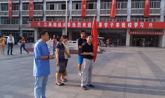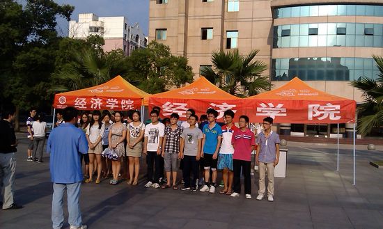 9月6日下午4时30分,江西财经大学经济学院在北区崛起广场进行了2012年迎新工作启动仪式。院党总支副书记吴太福、党总支干事张曙红,分团委书记郭勇、辅导员曹雯以及学院迎新志愿者们共同参加了启动仪式。