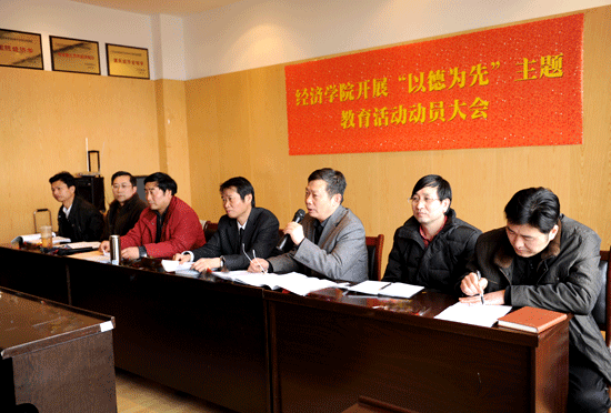 为进一步提高我院教职工的思想道德素质,按照校党委《关于在全校师生员工中开展“以德为先”主题教育活动的实施意见》的具体要求,经济学院于3月24日下午在北区综合楼八楼第一会议室召开以德为先主题教育动员大会。