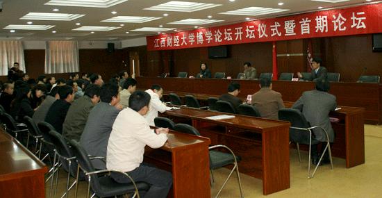 2010年4月9日下午,江西财经大学博士论坛开坛仪式暨首次博士论坛在南区十一楼第二会议室隆重举行。论坛由博士后流动站主任杨慧教授主持;副校长吴照云教授从管理学角度上阐述了论坛的功能定位、方针和形式。我院副院长肖文海博士作了主题为“建立资源环境价格制度,促进循环经济长效发展”的讲座。
