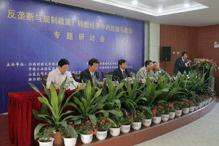 南昌十月,秋高气爽,惠风和畅,丹桂飘香。2009年10月24日早八点,由江西财经大学经济学院、中国工业经济杂志社、山东大学反垄断与竞争政策研究中心、浙江财经学院主办,江西财经大学经济学院、江西财经大学规制与竞争研究中心承办的第三届“反垄断与规制政策:转型经济中的经验与教训”专题研讨会在江西财经大学隆重开幕。