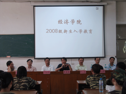 为了让新生更快的了解学院发展的状况及专业设置,更好的适应大学的学习和生活,加强新生入学的教育。按照学校统一部署,9月12日下午,经济学院在蛟桥园校区4121教室隆重召开了新生入学教育大会。经济学院院长陈富良教授、党总书记毕正华教授、副院长席小炎副教授、副院长但承龙副教授、副院长万小明老师、党总支副书记吴太福副教授以及各系主任等领导出席了座谈会,党、团工作员,08级新生班主任以及08级全体新生参加了这次会议。大会由吴太福副书记主持。