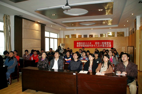 举国共庆十八大,团结一致跟党走,青春澎湃梦激情,爱国爱党爱人民。经济学院全体师生以十八大的召开为契机,认真学习会议精神,进一步提高思想政治觉悟,在党的带领下,学院必将认真贯彻落实十八大会议精神。