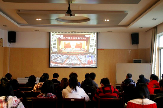 十八大会拉帷幕,党的事业谱新篇。11月8日上午9点,中国共产党第十八次全国代表大会在人民大会堂拉开盛大帷幕,经济学院师生代表在综合楼八楼会议室举办了“举国同庆十八大,团结一致跟党走”集体观看十八大开幕式直播活动。党总支副书记吴太福、学生会分团委书记郭勇等老师一并观看了大会直播盛况。