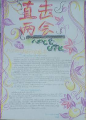 活动开展期间,学生党员、入党积极分子关注两会动态、响应两会号召、学习“两会精神”,以寝室为单位,积极参与到比赛当中。本次比赛征集到许多优秀作品,版面设计独特新颖,主题鲜明、思想深刻,其内容涵盖了社会道德建设、温家宝工作报告等热点问题,独特而又深刻的见解,表现了同学们对“两会”精神的理解与认识。经评选,王芸芸、孔瑜、阎波、尹欢、栾佳蓉、付菊获一等奖,韩璐璐、王小虎、杨鹏等同学获二等奖,何恺文、李鹤、郑雅婷等同学获三等奖。“我看两会”手抄报比赛圆满地落下了帷幕。