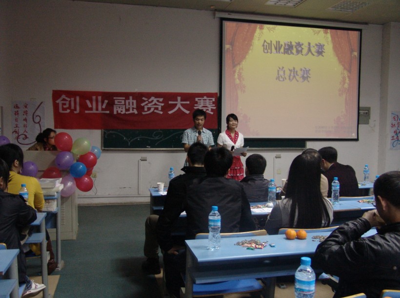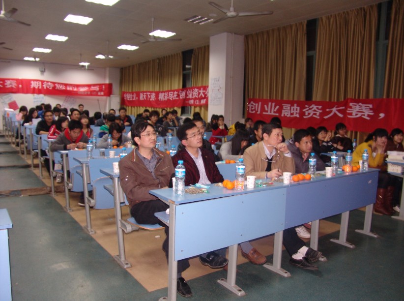 4月9日18:30,由经济学院09经济学2班承办的创业融资大赛在蛟桥园南区1103顺利举办。与会嘉宾有经济学院副院长席小炎副教授、经济学院党总支副书记吴太福副教授、经济学院桂林博士,同时前学生会干部赵春苗、常委陈熙、常委刘华荣出席此次活动。