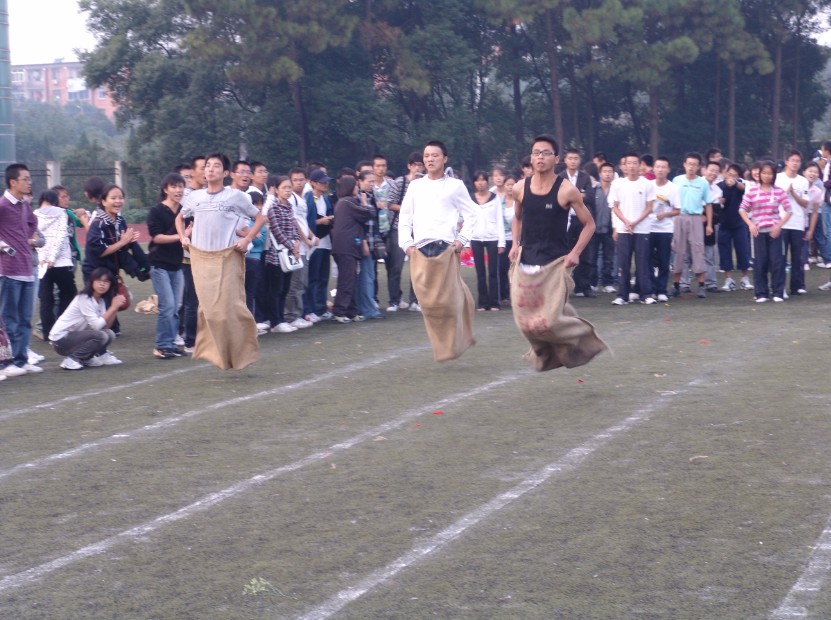 在15日下午四点的袋鼠跳比赛中,经济学院荣获第六名的好成绩。 六天艰苦的训练,同学们凭借着不畏艰辛风雨无阻的精神,熟练地掌握了比赛的技巧,并灵活地在比赛场上展示出来。比赛前他们互相鼓励,只见一声令下,各位参赛者立马做好准备,双手提好袋子,一步步勇敢快速的向前跳去。虽然有的超过了他们,但他们没有气馁,坚持完成任务,尽自己最大努力冲向终点。拉拉队员们紧张得手心冒汗,嘶喊着“加油”,待参赛者们到达终点,他们也蜂拥而至,一起分享胜利的喜悦。