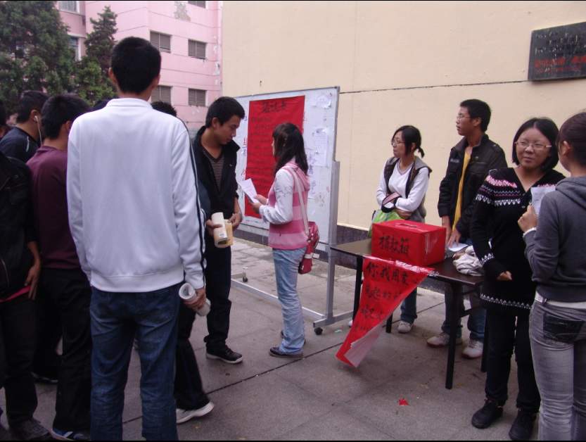 捐款点刚一设立,就已经有不少人聚集而来。鲜艳的红色作底色,规整而有力的楷书排列其上,鲜明的倡议书海报映人眼帘:校友聂怀群是04级国民经济管理专业的一名学生。他乐于助人,学习优异,深受老师同学的喜欢,于08年毕业,现工作于广州光大银行分支机构。08年12月在一次体检中被检查出患有再生性障碍性贫血,由于家境贫困,经济拮据,又因高昂的移植骨髓费用,他只能用药物维持。如此命运坎坷的人,作为校友的我们应当尽自己的一份力,去挽救一个正值朝气蓬勃的生命。