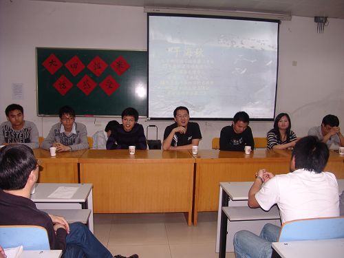 在“自我介绍”环节中,学长学姐讲述了一些自己在大学里的经历,以及一些关于考研、就业的经验。其中吴良学长的自我介绍非常的生动形象,他把考研分成三个阶段,第一个阶段为明确目标、下定决心。第二个阶段为“衣带渐宽终不悔,为伊消得人憔悴”,意思就是备考的过程是十分痛苦的,但我们要坚强乐观的坚持下去。第三个阶段为“蓦然回首,那人却在灯火阑珊处”意思为只要把前面两个环节做好,考取研究生就变得自然、简单。