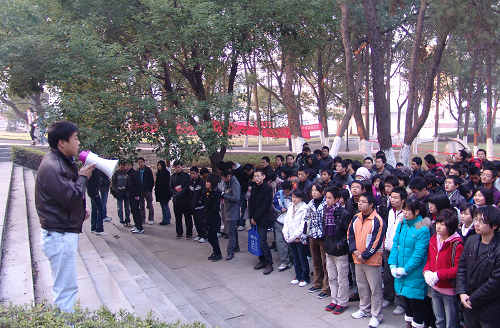 11月23日早上7:10我院在北区语林广场召开学院大会。此次会议主要内容是关于我院开展晨读、晨练活动的通知。分团委书记郭勇老师、第一副书记张金伍出席了此次会议。