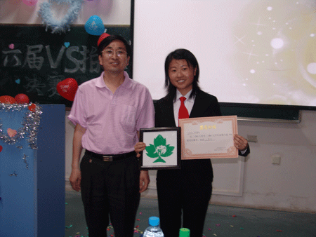 本次拍卖会共有十名选手进入决赛,在主持人介绍完评分细则后,选手们依次对自己所要拍卖的物品进行介绍、展示和拍卖。在这次拍卖中,最让人震撼的是康宜俊拍卖的一组具有收藏价值的扇子和王鹏拍卖的一只可爱熊,不仅仅观众们在激烈的争夺,同时评委老师们也在为得到这两件宝物而展开了激烈的争夺。这次活动还有一个互动环节,让观众们知道了选手们从初赛到决赛的历程,也了解了一些关于拍卖的小知识。本次“VS拍卖会”冠军获得者是来自08经济学一班的王思远,她拍卖的是一幅画??《美丽的地球》,这幅画是由启音聋哑学校的同学画的,由07经济学一班同学们装扮的,底价是零元,最后以一百五十元成交,在这次拍卖会中这件拍卖品拍到全场最高价。