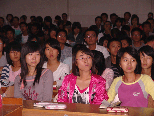 接下来学生党支部副书记刘辉学长详细地为我们介绍了入党程序、入党条件以及我院党支部的辉煌历史,他说无论以后在学习工作还是生活中,政治态度、政治水平、道德品质的优劣对一个人的影响是很大的。最后学长以马克思的一句名言“如果我们选择了最能为人类谋福利的职业,那么重担就不能把我们压倒,因为这是为大家而献身;那时我们所感到的就不是可怜的、有限的、自私的乐趣,我们的幸福将属于千百万人,我们的事业将默默地,但是将会永恒地传递下去,而面对我们的骨灰,高尚的人们将洒下热泪……”结束了他的讲话。之后是现场互动,学长学姐们帮助我们解决了一些关于是否要考研和如何协调好学习与工作的关系等问题。