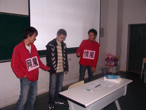 11月23号晚18点30分,由我院心理协会举行的心理情景剧表演赛在1102隆重上演。出席的评委和嘉宾分别有经济学院分团委第三副书记赖锐学姐,学生会常委张龙学长和周滔学长,副主席管健学姐和汤伟学长,组织委员尚伶学姐和郑锭学长,经济学院社管委主席李文桢学姐等。