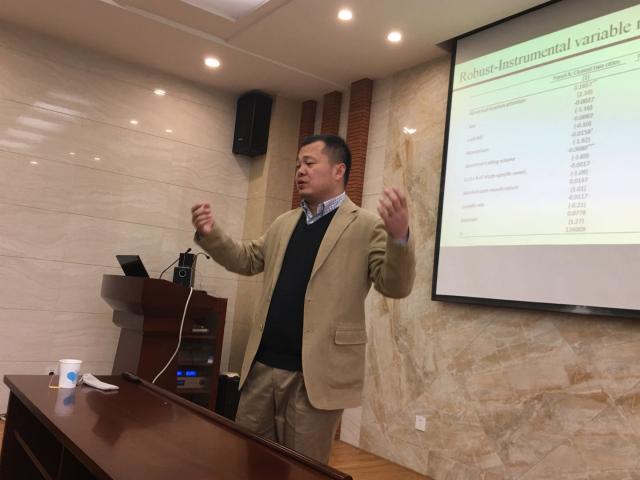 2019年1月5日下午,中央财经大学研究生院副院长、张学勇教授在经济学院八楼会议室举行了一场学术讲座,讲座的题目是Location Attention and stock returns。讲座由经济学院副院长李国民主持。学院40多位研究生人和部分老师参加了讲座。