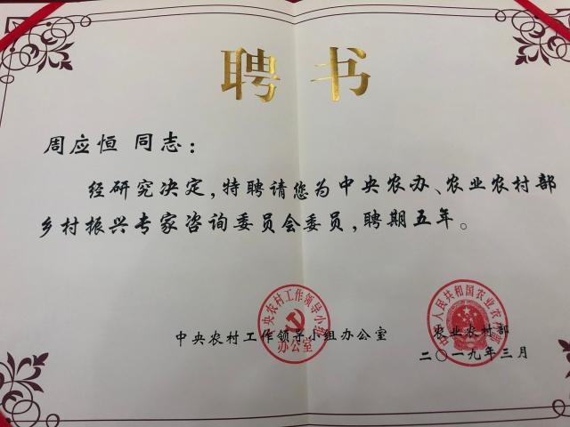 实施乡村振兴战略是党中央赋予“三农”战线的重要历史使命,加强专家咨询工作是实施乡村振兴战略的迫切需要。此次,我院周应恒教授成功入选中央农办、农业农村部乡村振兴专家咨询委员会委员,必将对我校和我院深度参与国家乡村振兴战略,加强城乡关系融合起到实质性的推动作用。