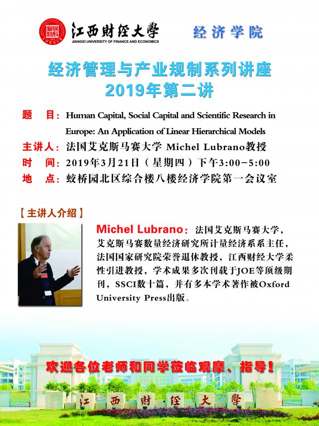 法国艾克斯马赛大学 Michel Lubrano教授讲座:Human Capital, Social Capital and Scientific Research in Europe: An Application of Linear Hierarchical Models 时间:2019-03-15 16:52:09 作者: 阅读: 上一篇:陈叶烽老师讲座信息 下一篇:《国际贸易》杂志社社长郭周明讲座