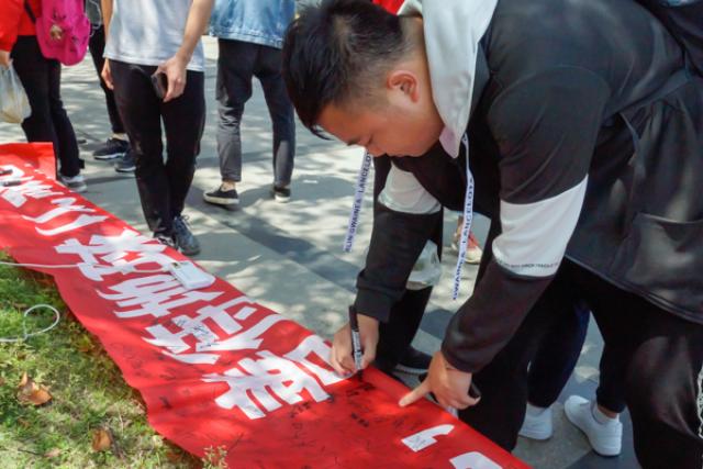 为使活动取得更大反响,在活动开始前几日,青协与和然联系宣传部开展线上微信、QQ、微博,线下张贴宣传横幅、班支动员等前期宣传,呼吁同学们积极参与其中。和然与青协部门成员提前准备好相关知识问答题库,确保世界地球日知识的充分传播与推广。活动当天,志愿者们提前来到场地做好充分的准备工作,保证活动的顺利开展。暖阳透过树叶缝隙,映在签名横幅上,引得同学们纷纷驻足签名。签名之后,志愿者们提问相关世界地球日小知识,同学们积极回答,志愿者们热情解读,形成一道亮丽的风景线。活动结束后,同学们纷纷表示,地球的现状远没有想象中那么美好,因此更加需要我们的关爱与呵护。