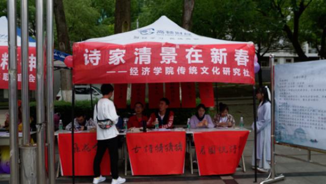 4月27日,经济学院传统文化研究社(以下简称“传文社”)于麦庐园组织开展传统文化节摆点活动。许多同学前来了解咨询,积极参与相关传统文化游戏活动。