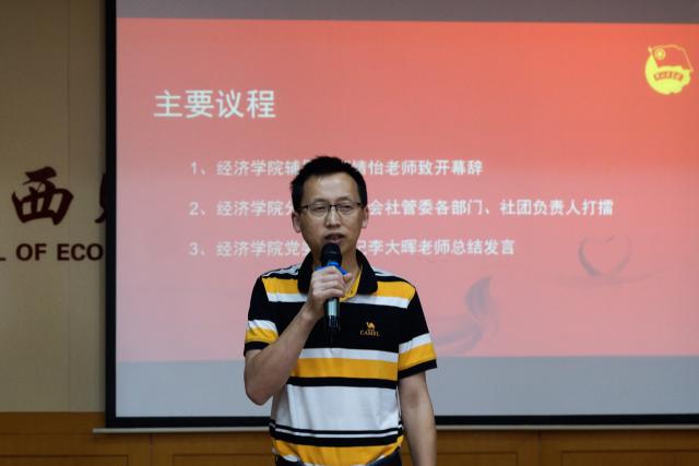 最后,李大晖副书记进行总结发言。他首先肯定了各部门的工作成效,他说:“经济学院的同学们能开心的学习和生活离不开学生会分团委各部门的努力与付出,这是学院和谐发展中相当重要的成分。”此外,他还鼓励学生们积极加入学生会的工作中,为学院建设贡献自己的力量和青春。同时,他强调学习的重要性,希望大家兼顾社团工作和学习,不断锻炼自己,自信自强,成为更加优秀的学子。