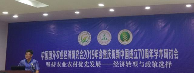 8月16-18日,中国国外农业经济研究会2019年会暨庆祝新中国成立70周年学术研讨会在陕西杨凌举行,会议主题为“坚持农业农村优先发展——经济转型与政策选择”。来自国家发改委、农业农村部、中国社会科学院农村发展研究所、中国农业大学、西南大学、南京农业大学、华南农业大学、华中农业大学、西北农林科技大学、江南大学、中央财经大学、云南财经大学、南京财经大学、中南财经政法大学、西南财经大学、江西财经大学等200余名专家、学者、青年学子及《中国农村经济》、《China Agricultural Economic Review》、《世界农业》、《青岛社会科学》等期刊主编参加了本次会议。我院周应恒教授、陈苏老师及鲍丙飞博士研究生受邀出席会议。