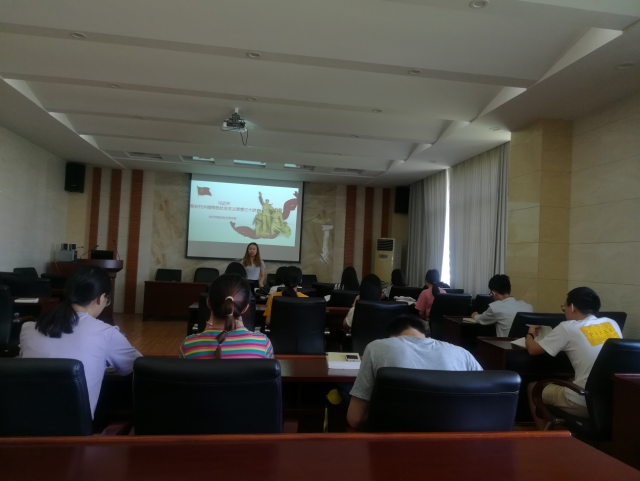 9月22日上午,为贯彻落实“不忘初心、牢记使命”主题教育,经济学院本科生党支部在本科生党支部书记万婧怡的带领下观看《建国大业》主题影片开展爱国主义教育。