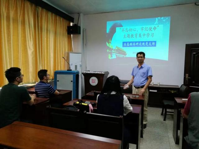 为了深刻认识“不忘初心、牢记使命”主题教育的重大意义,确保教育高质量开展。9月26日下午,生态经济研究院党支部在1008会议室举行“不忘初心、牢记使命”主题教育集中学习活动。本次活动主要围绕“传承红色基因,弘扬优良传统”为主题的支部第三季度党课展开,副院长兼支部书记黄和平教授主持了本次党课和主题教育活动,支部在校全体教工党员和学生党员参加了本次党课和集中学习活动。