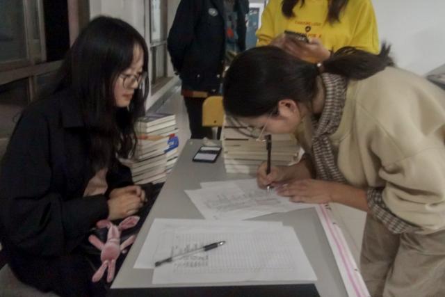 活动尚未开始,经院志愿者们便早早地来到现场进行准备工作。简洁明了的海报、语言真挚的横幅和简单大方的装饰,一切都展现出志愿者们的精心和用心。活动开始后,不少同学来到现场捐赠书籍。有的同学刚下晚课就赶来活动现场,有的同学在书的扉页上写下祝福,有的同学捐赠书籍后不忘向朋友进行宣传……一时之间,活动现场不断传来欢声笑语。不少同学表示,此次书籍捐赠活动十分有意义,这不仅是知识的传递,更是爱心的接力,他们将继续支持青协的志愿活动,用实际行动体验“汇聚小爱、成就大爱”的深刻含义。据悉,本次活动中募得的书籍将赠于校研究生支教团定点服务的四川省小金县美兴中学。