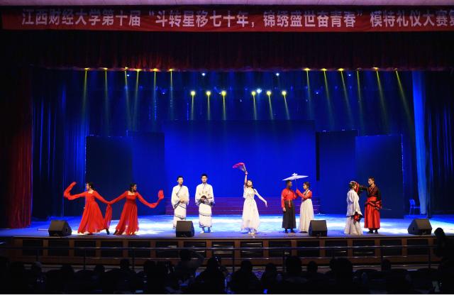 11月15日下午,经济学院女生部组织的经济学院模特队于麦庐大礼堂参加江西财经大学第十届模特大赛复赛。本次比赛由数十位评委打分,经院学子积极参与其中。