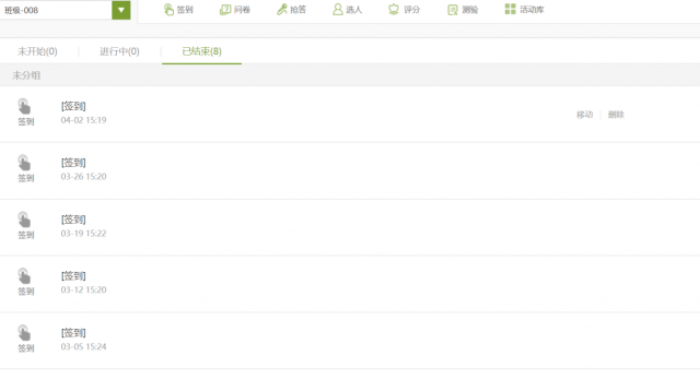 使用超星网络教学平台实现签到、点名、发布作业和发起讨论等一些操作。在签到方面,要求学生每节课都必须签到,课堂中间针对所讲知识点进行讨论。同时,通过不定时对学生点名回答问题,使学生保持适度的紧张感,防止学生上课时过于松懈。通过发布课后测验的形式来发现学生在学习过程中出现的问题,同时也能巩固教学效果。