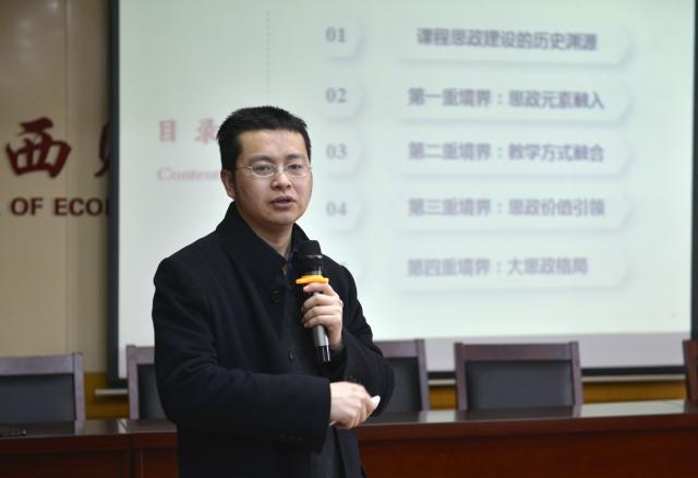 为全面提高人才培养质量,打造一流金课,培育优秀教学成果,3月3日下午2点,我院在北综7楼会议室召开以“课程思政示范课和SPOC教学”为主题的课程建设研讨会。会议邀请教务处副处长蔡前、金融学院副院长胡少勇和国民经济管理系主任裘莹三位老师作主题报告,全院老师参加。会议由院教学副院长胡德龙主持。