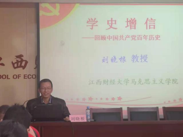 3月24日,经济学院邀请马克思主义学院副院长刘晓根教授为全体教工党员讲授一堂题为“学史增信——回顾中国共产党百年历史”的生动党课。