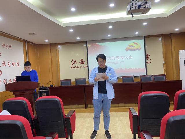 4月28日,经济学院研究生党支部召开预备党员吸收大会,全体研究生党员参加会议,大会由研究生党支部书记杨柳主持。