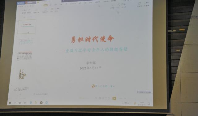 李大晖老师通过与同学们分享习近平总书记自2013年以来对青年学子、工作者的重要讲话及寄语展开。习近平总书记在讲话中对青年人提出了几点要求,“青年人要立志做大事,不要立志做大官,青年时代,选择了吃苦也就选择了收获,选择了奉献也就选择了高尚。青年人应志存高远,脚踏实地,做青年友,而不做青年‘官’”。