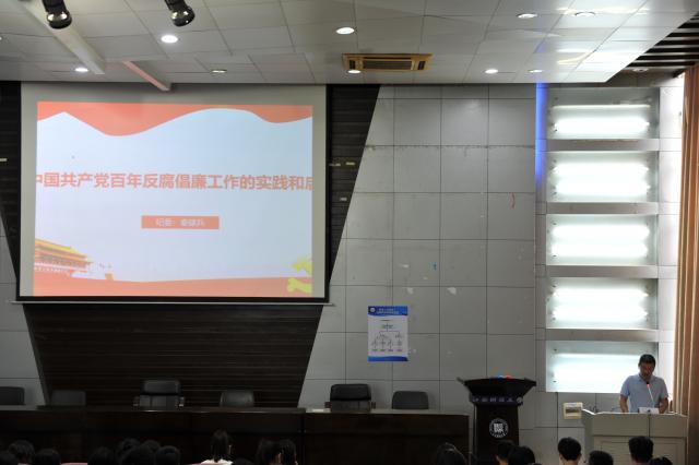 接下来秦建兵老师细致的向同学们讲解了中国共产党百年反腐倡廉工作实践。秦建兵老师将百年工作分为七个历史时期,向同学阐述中国共产党在初创时期、土地革命战争时期、抗日战争时期、解放战争时期、社会主义建设时期、改革开放新时期和中国特色社会主义新时代的反腐工作。