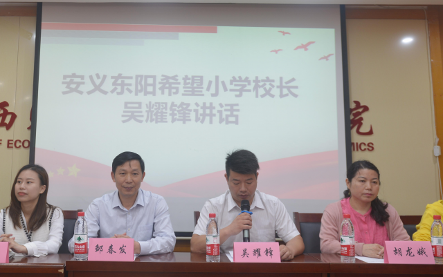 会上,邹春发书记代表学院欢迎安义希望小学孩子们的到来,并对他们送去节日的祝福。他表示,两地虽远,但双方之间的爱与心意永远不会消散,经济学院将会继续传递微爱,让友善闪闪发光,让温暖绵延不绝。此次邀请安义东阳希望小学的孩子来校参观,希望他们能更加了解大学的学习生活状况,成为德才兼备的栋梁之材。