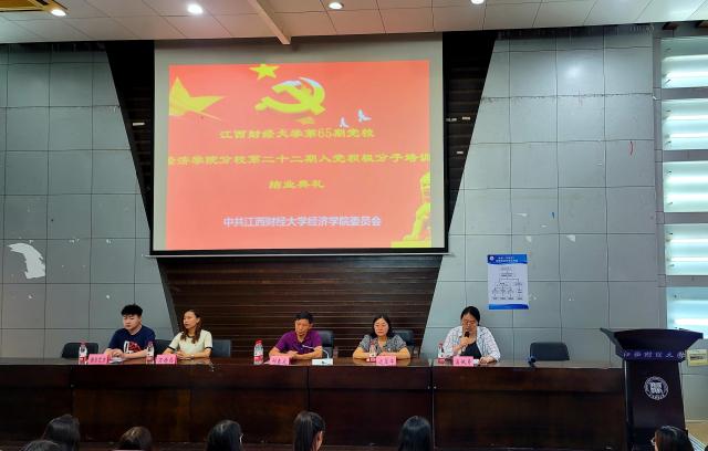 2021年6月5日下午,经济学院举行第二十二期入党积极分子培训班结业典礼,经济学院党委书记邹春发、党委副书记远翠平、学生党支部书记万婧怡、吴佩芹、谢尔艾力出席本次活动,会议由党校班主任吴佩芹主持。