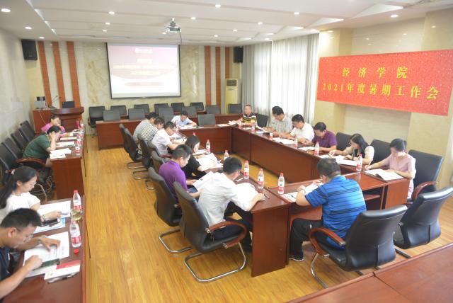 7月13日下午,为全面总结我院2021年上半年重点工作和阶段性成绩,客观分析和研讨学院发展过程中的重点难点问题,不断推动学院高质发展,经济学院召开了主题为“以党史学习教育为引领,全面推进学院事业高质量发展”的2021年暑期工作会议。全体院领导班子成员、各系(室)负责人、各教工党支部书记出席,并特邀学院部分教学科研骨干参加。