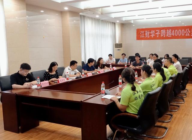 为推动新时代党的治疆方略落地生根,响应“小我融入大我,青春献给祖国”的号召,促进新疆地区的发展,7月17日上午,江西财经大学“江新比心,让爱助力”赴疆志愿服务队在北区综合楼815举办出征仪式。校团委书记夏贤锋、经济学院党委书记邹春发、副书记远翠平、学工办副主任万婧怡、辅导员及赴疆社会实践带队指导老师谢尔艾力参与,本次活动由副书记远翠平主持。