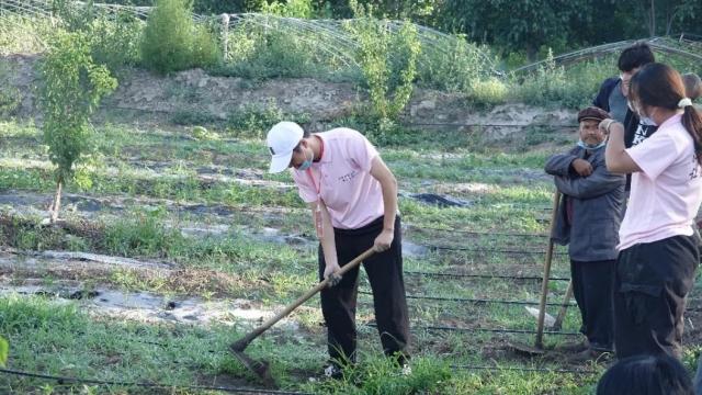 正值当地农忙时节,同学们主动向维吾尔族同胞学习了辣椒种植的相关知识和具体操作,随后队员们分成三组并确定了各小组的分工,开始种植辣椒;除草、挖坑、栽种、培土。经过同学们与维吾尔族村民们一天的辛勤劳作,终于完成了当天的工作。