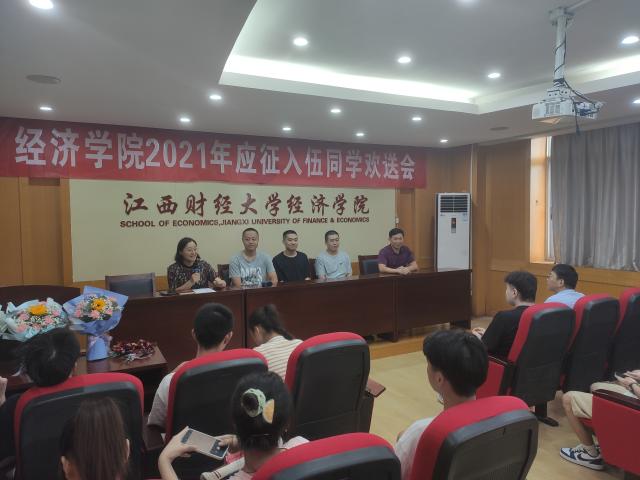 9月8日下午,经济学院2021年应征入伍同学欢送会于北综7楼会议室召举行。学院党委书记邹春发、辅导员谢尔艾力、钟义鹏以及即将入伍的三位大学生预定新兵、学生代60余人参加了欢送会。会议由党委副书记远翠平主持。