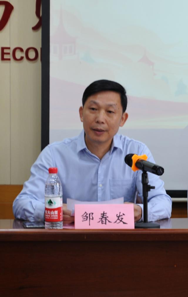 经济学院党委书记邹春发向预科班新生们详细地介绍了经济学院的建院历史及培养模式,鼓励同学们秉承校训精神,励学敦行。