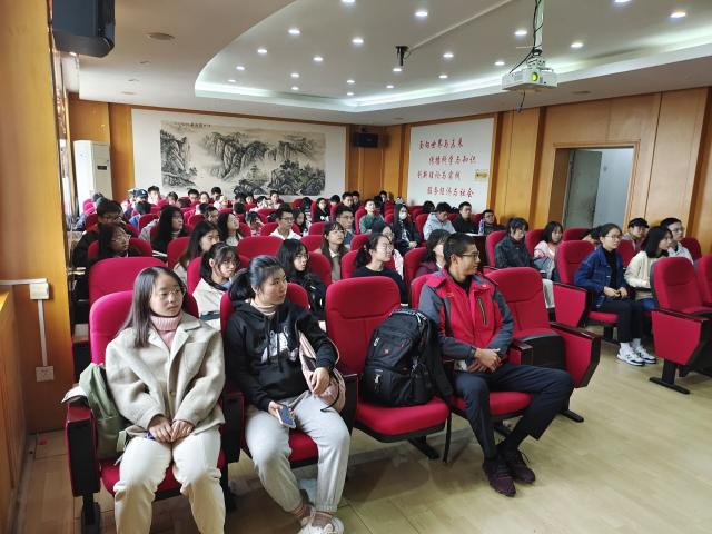 张鹏老师从学术的含义、学术之路、学术要点与得失成果四个方面进行授课。其中,张鹏老师重点讲述了学术研究选题的价值性、创新性、有趣性三大原则,并指出选题中应注意的要点:在具有实际意义并且具有开创性的前提下,做到四新“观点新、角度新、方法新、材料新”。在对文献搜集与综述的讲授中,张鹏老师推荐了搜索网站并简要介绍了其使用方式,并且在论文及报告的格式方面对同学们提出了一定的要求。最后,张鹏老师用“压力与行动的关系”来激励同学们积极投身学术领域的研究。