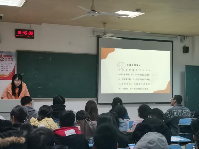 班会开始前,经济211班团支部书记李佳钰用两个心理测试小游戏带领同学们走进了心理健康教育的世界。经济211班同学们以及前往参观学习的班长支书都积极参与其中。