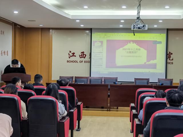 为深入学习贯彻习近平新时代中国特色社会主义思想和党的十九届六中全会精神为主要内容,强化师生对中国共产党伟大历程的认识,深化师生对党百年奋斗的重大成就和历史经验的学习,进一步凝聚师生不忘初心、牢记使命、砥砺奋进新征程的共识。经济学院研究生第一、第二支部党员同志联合于2021年12月22日在北区综合楼718会议室开展主题为“学六中全会精神,悟百年奋斗伟力”的主题党日活动,对相关资料内容进行集中学习,会议由第一党支部组织委员何声阳主持,研究生第一党支部书记谢尔艾力、研究生第二党支部书记杨柳及全体研究生党员参加。
