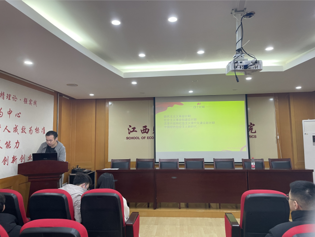 为深入学习贯彻习近平新时代中国特色社会主义思想和党的十九届六中全会精神,深刻把握党百年奋斗的重大成就、深刻理解党百年奋斗的历史意义、深刻领会党百年奋斗的历史经验,进一步凝聚师生不忘初心、牢记使命、砥砺奋进新征程的共识。经济学院第一党支部、第二党支部联合于2022年1月6日在北区综合楼718会议室,开展以“学精神、新开篇”为主题的党日活动。会议由第二党支部喻梦婷主持,第一党支部书记谢尔艾力、第二党支部书记杨柳以及全体研究生党员参加。