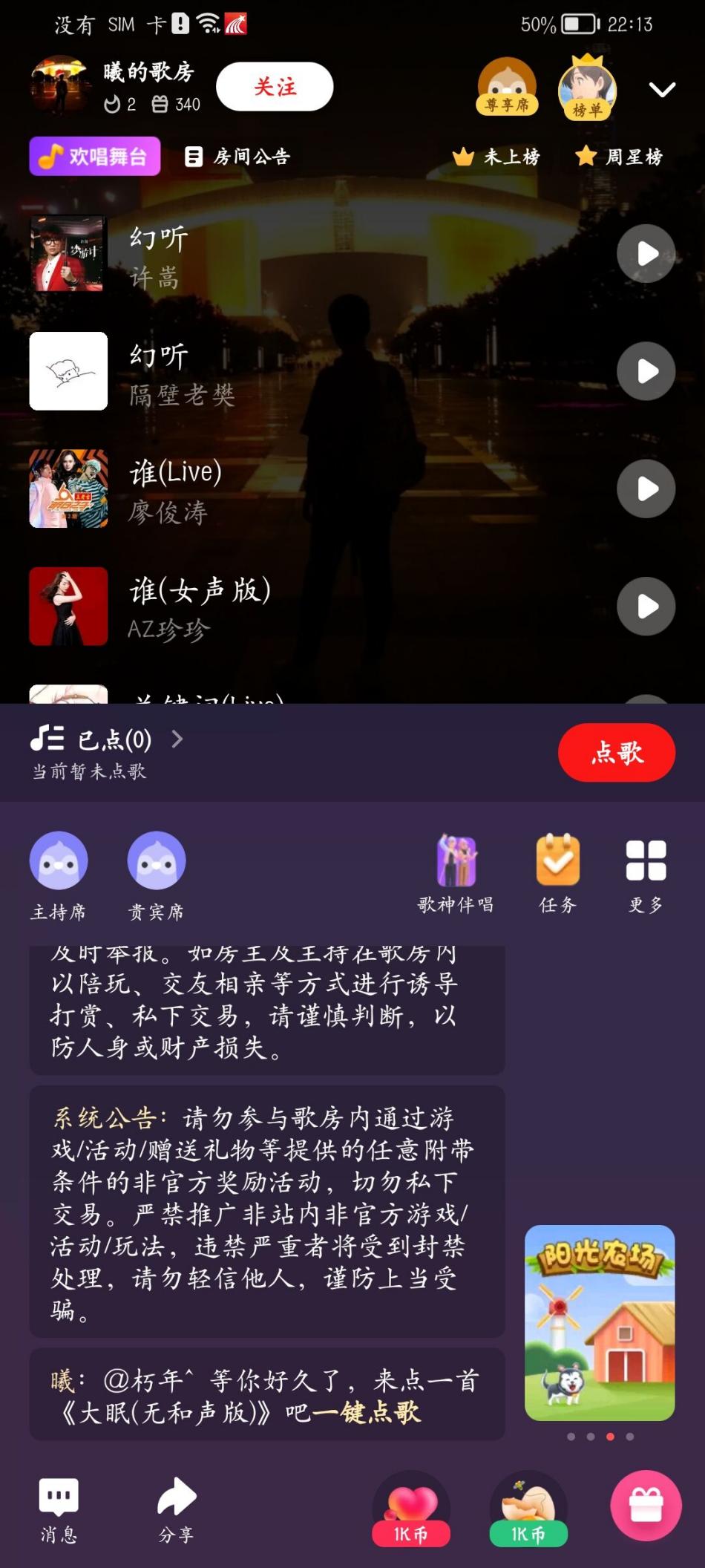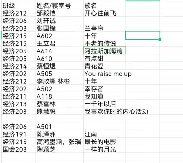 开场曲是由21级同学带来的《开心向前飞》,这首充满童年回忆和欢快情绪的歌曲,成功让同学们从一周以来受疫情影响的低迷情绪中逃了出来,也活跃起了线上k歌房的氛围。接下来的歌曲,从周杰伦《兰亭序》到陈奕迅的《十年》、再到林俊杰的