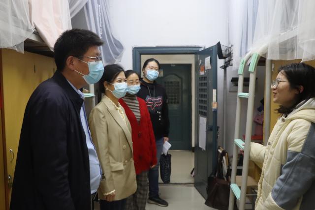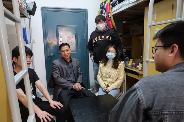 为及时了解学生的思想动态, 解决学生各类问题,假期间,院长张利国、党委书记邹春发、副书记远翠平、副院长裘莹等带领辅导员走进学生宿舍,与学生谈心聊天,关怀并探望在校学生。在寝室里,领导老师们与学生亲切交流,了解学生学校封闭管理以来的生活、学习情况。“水果能不能买到、物价贵不贵、哪个食堂的饭菜好吃、睡眠好不好、上网课习不习惯”都成了领导老师们关心的话题。张利国院长鼓励同学们增强户外体育锻炼,调节身心状态,利用好校内资源,继续保持积极昂扬的生活状态,并提醒同学们自觉遵守防疫要求,加强自我防护。邹春发书记引导同学们充分认识当前疫情防控形势的严峻性,校园防疫工作的重要性,请同学们理解并配合,遵守疫情防控政策和学校校纪校规,同时对毕业生们的就业问题也非常关心,针对同学的实际情况提供多方面的指导和帮助。走访中了解到,同学们都安心在校学习生活,有的到图书馆准备研究生复试,有的在宿舍自学,有的在运动场锻炼,大家感到生活方便,很充实。同学们纷纷表示,放假期间领导老师们还来看望,让他们很感动,感到很温暖。